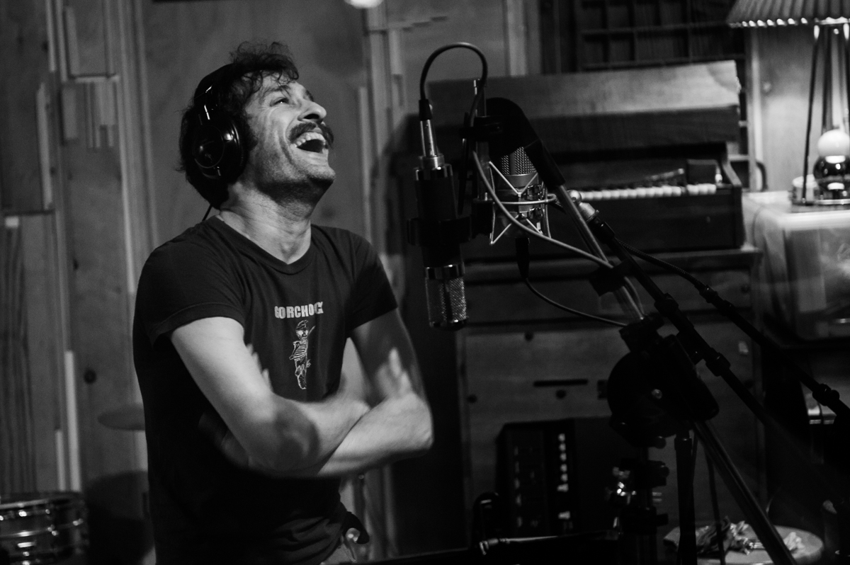 Aaron Diskin recording vocal tracks for Golem album Tanz 2014